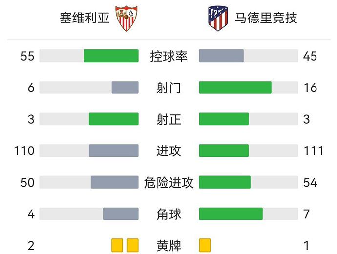 第34分钟,马竞破门!马竞右路角球机会,费利佩中路小禁区内头球后蹭破门。塞维利亚1-1马竞。