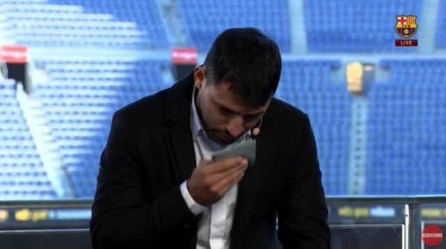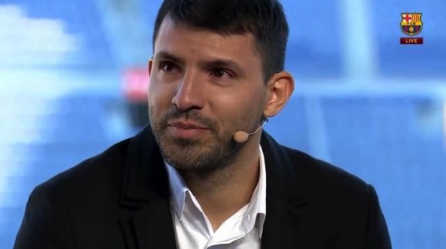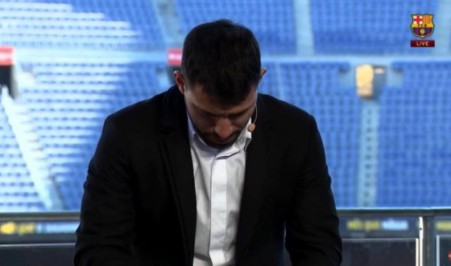 JRS直播网12月15日讯 19点,效力于西甲巴塞罗那俱乐部的阿根廷球星阿奎罗召开发布会。发布会上,阿奎罗在巴萨主席拉波尔塔的陪同下,亲自宣布正式结束自己的职业球员生涯。这位33岁的阿根廷前锋甚至一度情难自己,泪洒发布会现场!