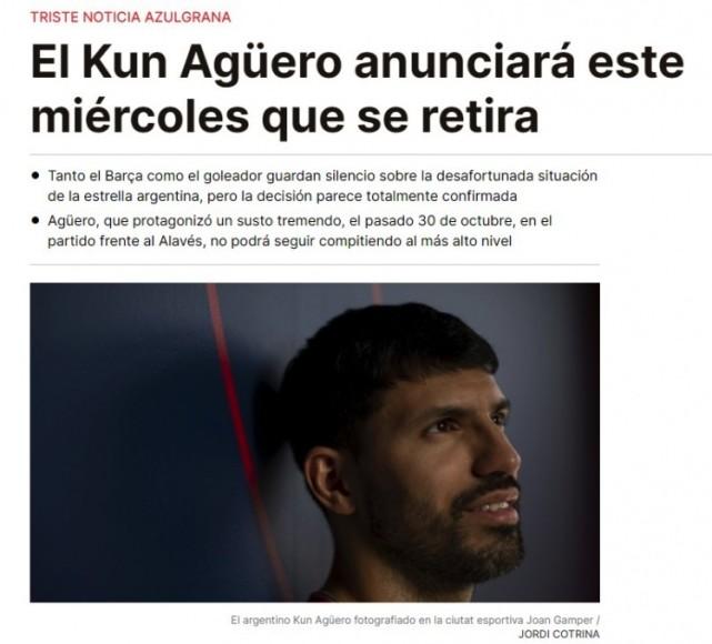 而阿奎罗即将退役的消息,也得到了巴塞罗那当地媒体《加泰罗尼亚晨报》的证实。这位33岁巨星,即将正式结束自己的职业球员生涯。