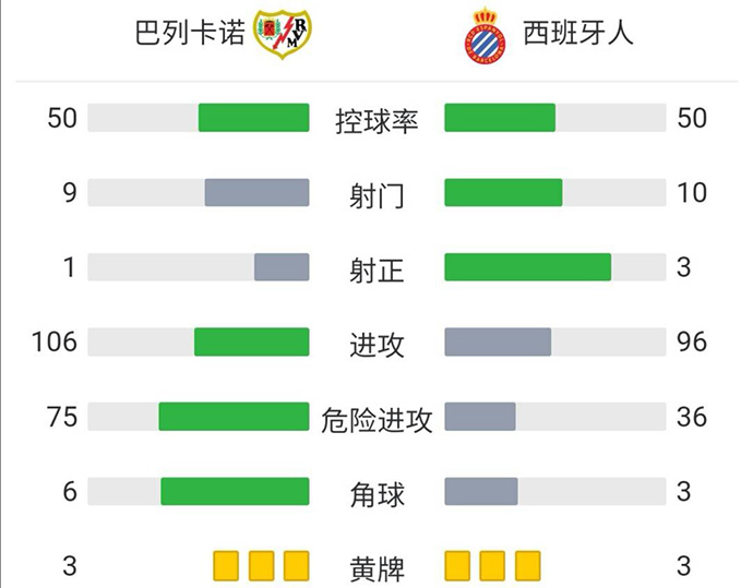 西班牙人0-1巴列卡诺 卡夫雷拉自摆乌龙普阿多失良机