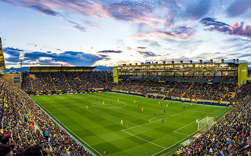 比利亚雷亚尔主场是情歌球场,1923年修建,该球场坐落于拉布拉多广场(Plaza Labrador)。美丽的地中海就在球场外5公里外,情歌球场的海拔是海平面上50米。球场可以容纳观众22000人,球场的上座人数一般在17000人到18000人之间。场地的面积是105米 x 68 米。