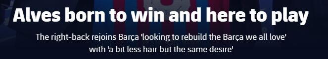 JRS直播网11月19日讯 ,巴西老将阿尔维斯接受巴萨官网的采访,他表示自己回到巴萨不是为了养老。