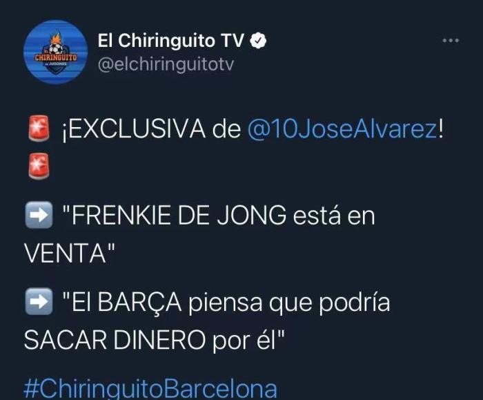 六台表示,德容已经不再是巴萨阵中的非卖品,巴萨认为出售他可以回收大量的资金,目前他们也确实正在认真考虑这点。