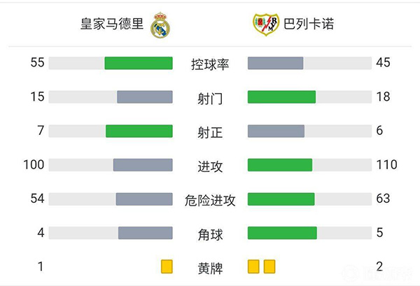 全场比赛结束,最终皇马2-1巴列卡诺。