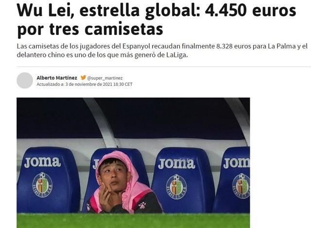 JRS直播网11月04日讯 尽管最近一段时间没能在球场上有出彩的表现,但在球场外武磊强大的影响力,却再度引发了西班牙媒体的侧目。