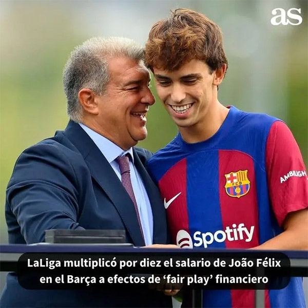 JRS直播网01月08日讯 西甲主席哈维尔-特巴斯证实,巴塞罗那出于公平竞赛的目的,将若昂和俱乐部之间达成的薪酬乘以10。该协议意味着菲利克斯现在的年薪为344.44万英镑。
