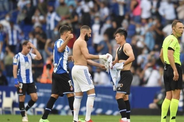 值得注意的是,武磊赛后还与皇马巨星本泽马交换了球衣。本场比赛,本泽马为皇马打进挽回颜面的进球,目前以9个进球7次助攻领跑西甲射手榜和助攻榜,堪称是当之无愧的西甲第一球星。武磊能在焦点大战赛后与西甲第一巨星互换球衣,这也难怪不少网友调侃:“太有排面了!”