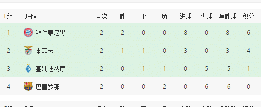 拜仁接下来的比赛中2胜2负,击败本菲卡和基辅,然后输给巴萨和本菲卡各1次;