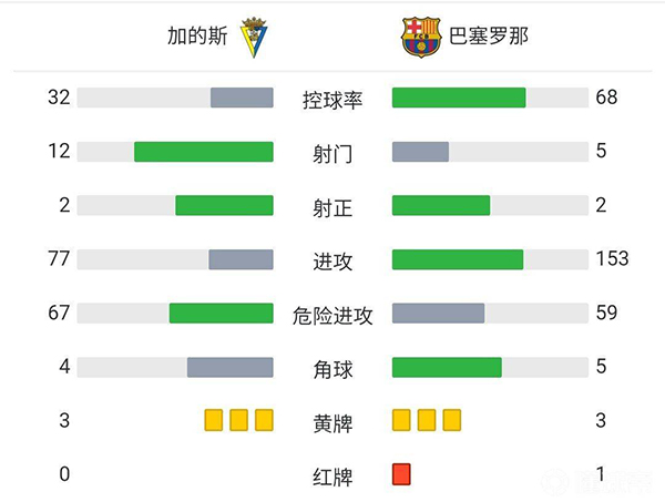 JRS直播网讯:北京时间9月24日04:00,西甲第6轮,巴塞罗那客场挑战加的斯。上半场节奏较慢,双方几乎没有任何有威胁的得分机会;下半场德容被两黄罚下,德佩错失良机。最终,巴萨0-0加的斯。