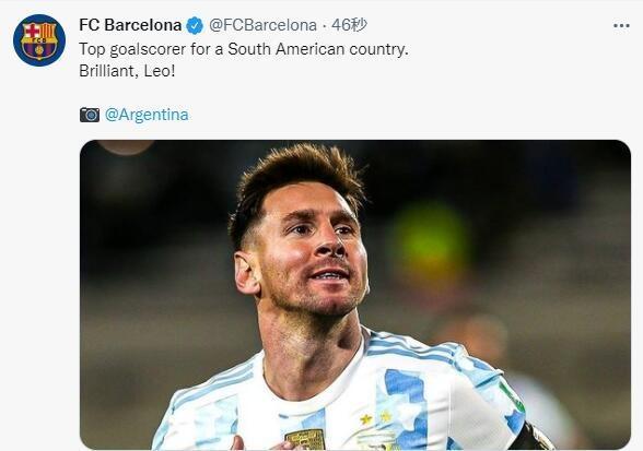 巴萨晒出梅西庆祝图:“南美国家队射手王,太棒了,里奥。”