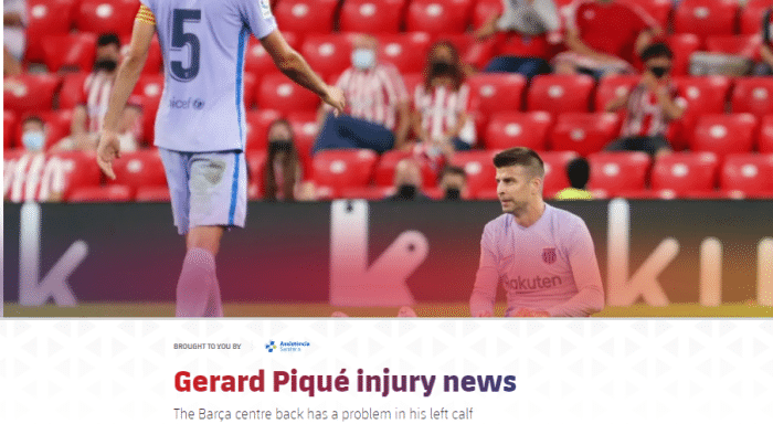JRS直播网讯在对毕尔巴鄂的联赛中,皮克因伤提前退场。赛后巴萨宣布他左小腿比目鱼肌感到不适,具体伤情还有待检查后确定。
