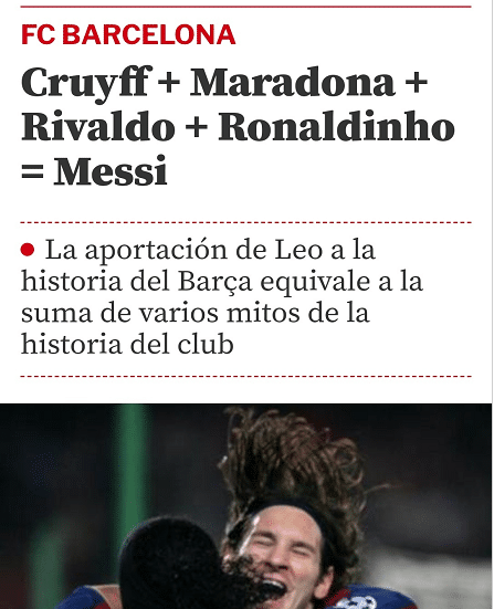 JRS直播网讯近日《世界体育报》针对梅西进行报道,称梅西在巴萨效力了17个赛季,而克鲁伊夫、马拉多纳、里瓦尔多和罗纳尔迪尼奥这四位巴萨传奇加起来也都在球队效力了17个赛季,数据对比的话,梅西打进778场打进670球,赢得10次西甲冠军和4次欧冠冠军。这四位传奇在巴萨加起来680场打进322球,夺得5个联赛冠军1个欧冠冠军。从数据对比的话,梅西一人就比肩这四名巴萨传奇了。