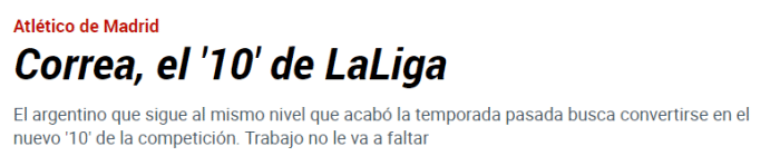 科雷亚在上赛季帮助马竞拿到西甲冠军,同时在夏天的美洲杯上也随阿根廷夺冠,梅西离开西甲后,科雷亚有能力成为新的领军人物。