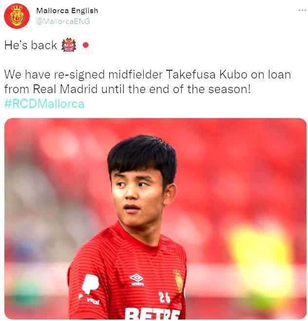 新赛季,久保建英将回到马洛卡,2019-20赛季,他也曾被皇马外租到这支球队效力。