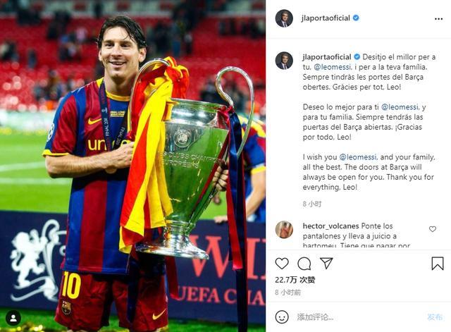 拉波尔塔ins喊话梅西:巴萨的大门永远为你打开