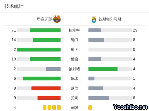 巴萨1-0拉斯帕尔马斯 拉菲尼亚制胜