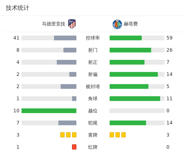 JRS直播网讯:北京时间12月20日西甲 联赛 第18轮,马德里竞技主场对阵赫塔费。上半场,萨维奇累计两黄被罚下,里克尔梅助攻格列兹曼破门。下半场,马约拉尔头球破门,莫拉塔替补建功,格列兹曼点射破门追平队史最佳射手,奥斯卡-罗格里格斯抽射扳回一分,比赛补时阶段,里克尔梅手球送点,马约拉尔点射追平,最终,马竞连丢两球3-3遭赫塔费绝平。