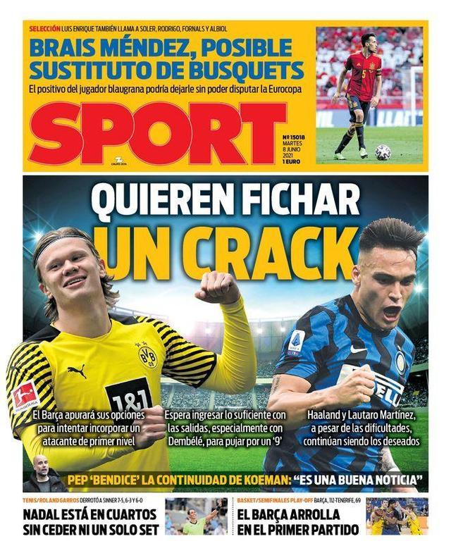 JRS直播网讯据《每日体育报》今日头版消息,巴萨想引进一名顶级前锋,劳塔罗和哈兰德仍然是他们的目标。
