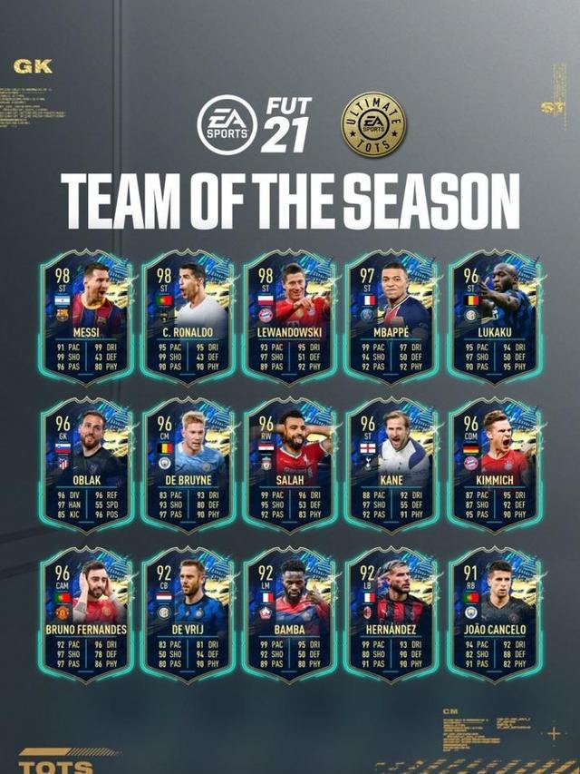 JRS直播网讯 北京时间6月5日,艺电旗下的足球游戏FIFA21公布了赛季最佳15人名单,梅西、C罗、莱万多夫斯基领衔榜单,坎特没能入选。