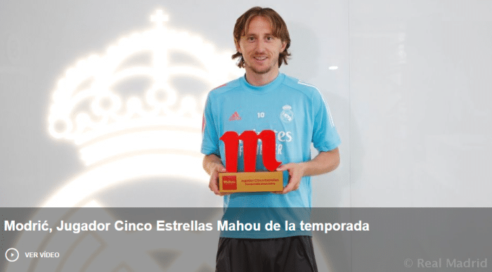JRS直播网讯 今日,皇马官方宣布,中场球员莫德里奇当选了本赛季球队最佳球员!