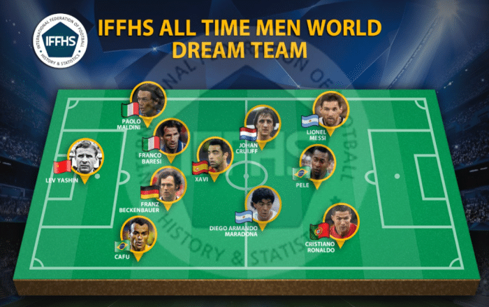 JRS直播网讯 ,IFFHS(国际足球历史和统计联合会)近日公布了他们评选的足坛历史梦之队阵容,贝利和梅罗组成前场三叉戟。