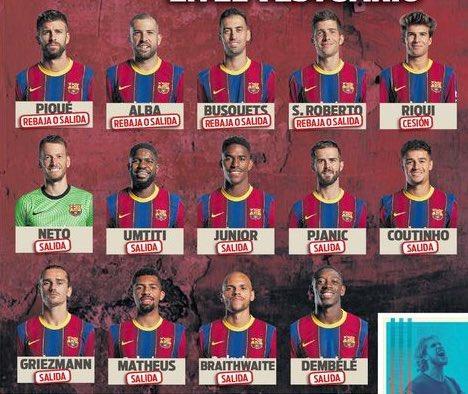 JRS直播网讯 据《每日体育报》报道,巴萨已经明确了他们对队内14名球员的态度,格列兹曼、库蒂尼奥、皮亚尼奇和登贝莱等人都在清洗范围内。