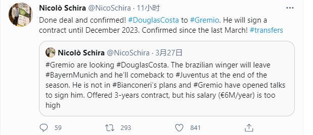 JRS直播网讯 5月15日记者尼科洛-斯基拉消息,格雷米奥已经完成了道格拉斯-科斯塔的转会。