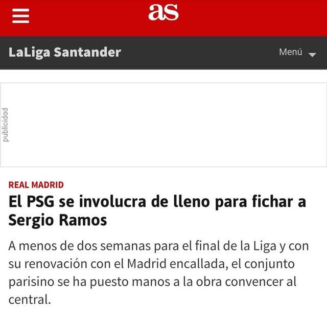JRS直播网讯5月14日据西班牙《阿斯报》报道,在本赛季西甲还剩两轮,拉莫斯与皇马的合同还剩一个半月的情况下,他下赛季的去向几周内将会有结果,应该只有与皇马续约、加盟巴黎圣日耳曼两种可能。