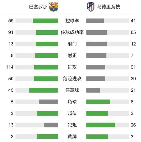 全场比赛结束,巴塞罗那主场0-0战平马德里竞技。