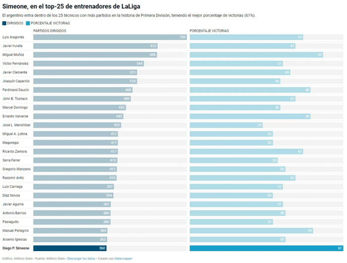 这样,西蒙尼超越埃莱尼奥-埃雷拉的359场,成为西甲历史上执教场次最多的阿根廷教练。