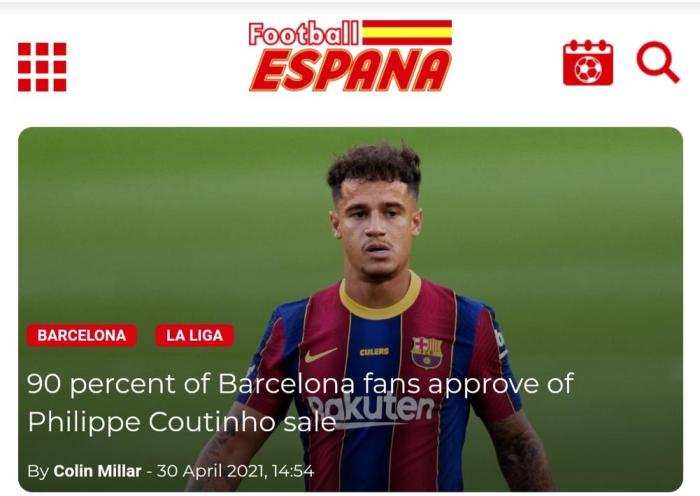 近日,据El Mundo Deportivo的一项民意调查,有89.2%的巴萨球迷认同这笔转会交易。