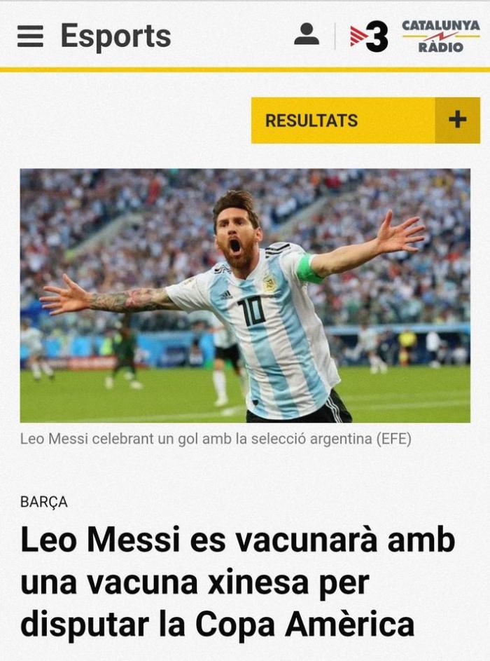 JRS直播网讯北京时间4月30日,据TV3消息,为备战今夏打响的美洲杯赛事,梅西将在本赛季结束后接种中国生产的新冠疫苗。