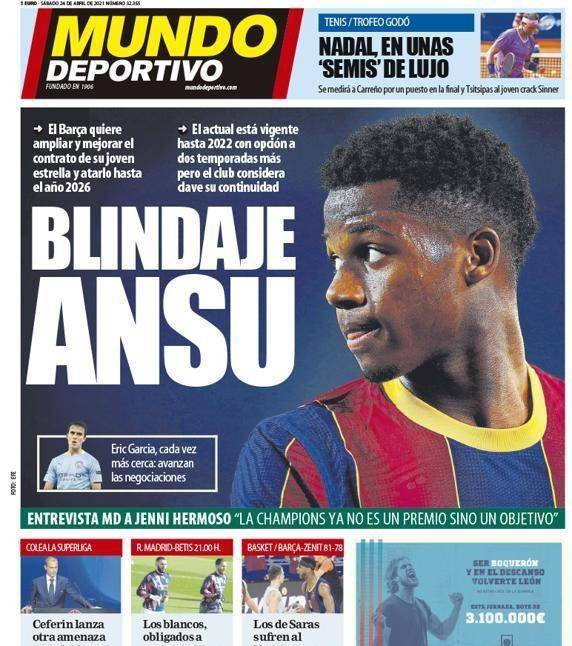 JRS直播网讯 北京时间4月24日讯:根据西班牙媒体每日体育报的消息,目前巴萨正在准备与队内小将法蒂再次进行续约。巴萨方面希望能够与法蒂续约到2026年,并且红蓝军团还希望趁着这次续约将球员的违约金进一步提升。