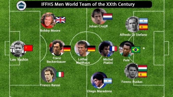 JRS直播网讯 国际足球历史统计联合会(IFFHS)日前评选了20世纪(1901-2000)足坛最佳阵容,由贝利和马拉多纳领衔。