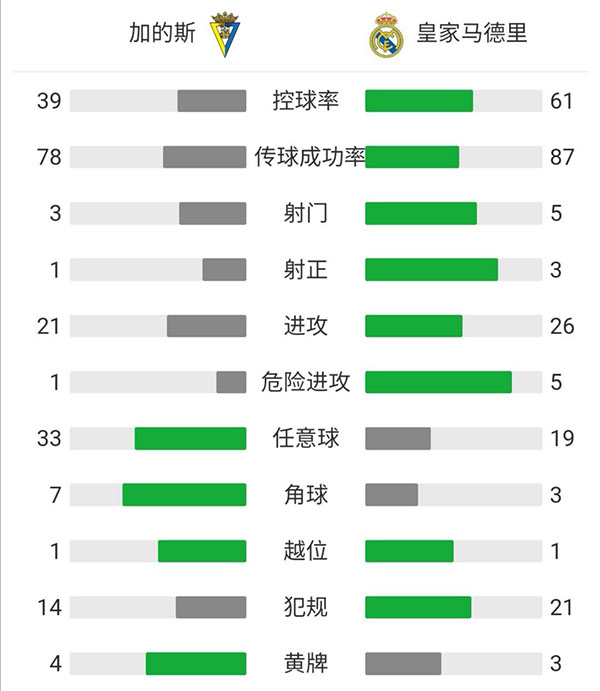 全场比赛结束,皇马客场3-0轻取加的斯。