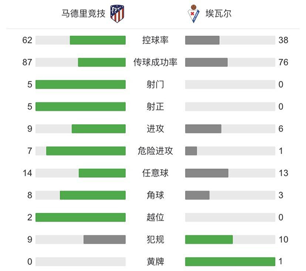 全场比赛结束,马竞5-0埃瓦尔。