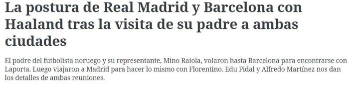 零点电台表示,拉伊奥拉和哈兰德的父亲已经和巴萨主席拉波尔塔会面,他们在周四下午又前往马德里,与皇马的高层会面。