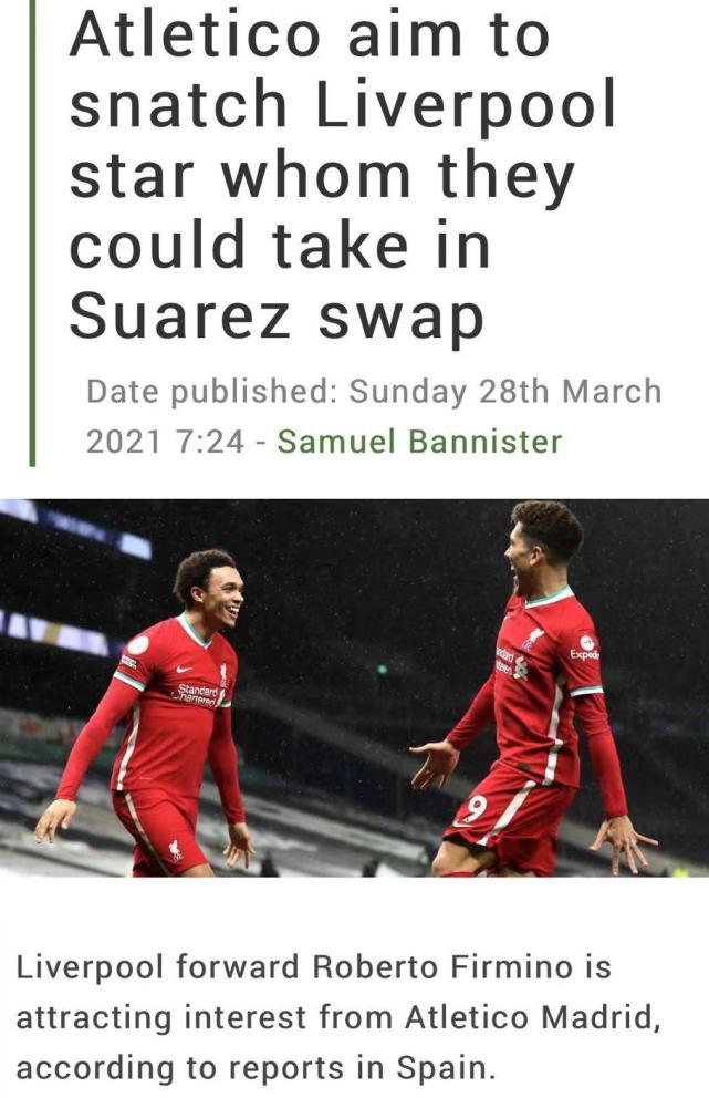 JRS直播网讯北京时间3月28日,来自西班牙知名媒体《El Gol Digital》的消息,西甲领头羊马竞正在关注效力于英超豪门利物浦的前锋国脚菲尔米诺。而为了签下这位巴西现役国脚,马竞计划将乌拉圭人苏亚雷斯作为引进菲尔米诺交易的一部分。