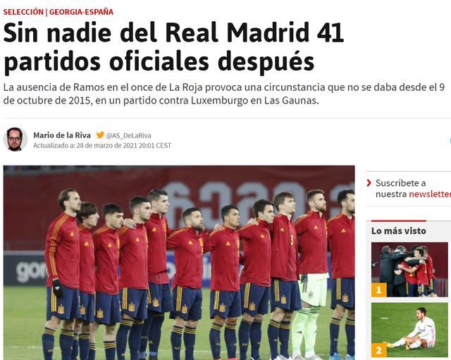 据统计,这是西班牙国家队时隔41场比赛之后首次没有皇马球员登场,上一次出现这种情况是2015年10月9日与卢森堡的欧预赛中。