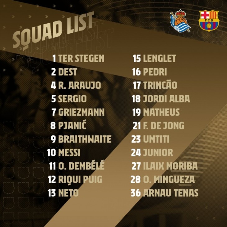 JRS直播网讯北京时间3月20日讯 巴萨公布联赛客场对阵皇家社会的大名单,梅西、格列兹曼在列,皮克伤缺,莫里巴、阿劳霍入选。