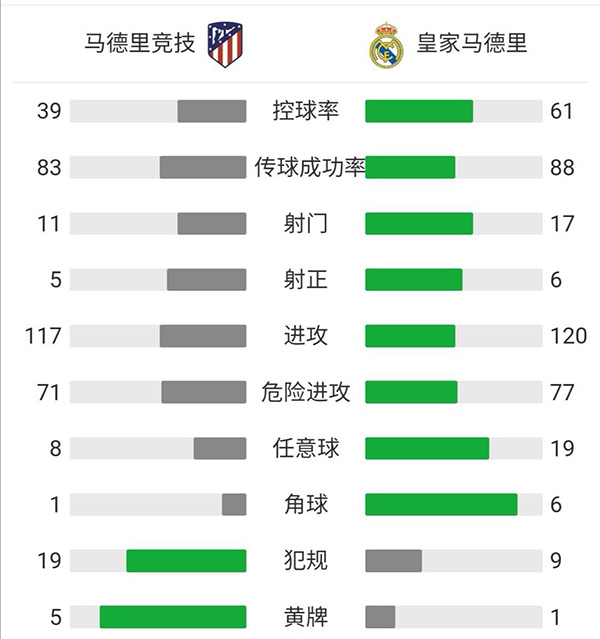 全场比赛结束,马德里竞技1-1皇家马德里。