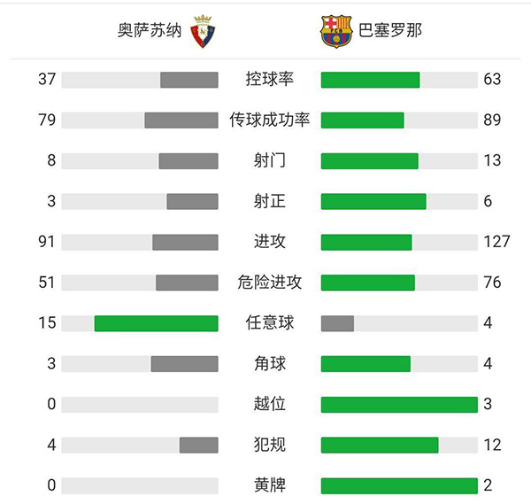 全场比赛结束,奥萨苏纳0-2巴塞罗那。