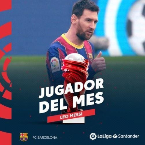 还是他! 官方: 梅西当选西甲2月最佳球员