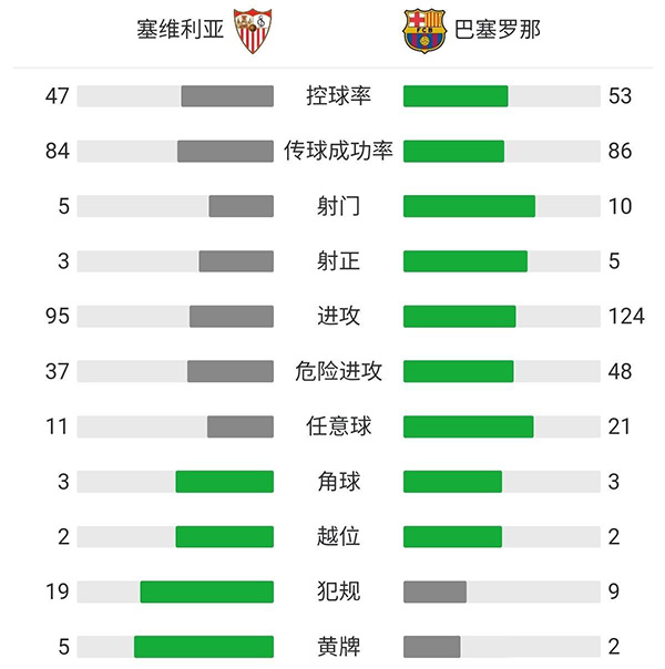 查看:塞维利亚vs巴塞罗那 全场录像技术统计: