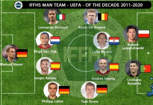 JRS直播网2月03日讯 国际足球历史和统计联合会(IFFHS)日前评选出了2011-2020年的欧洲最佳阵容,C罗和莱万领衔。