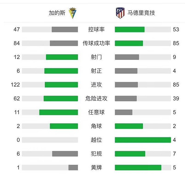 查看:加的斯vs马德里竞技 全场录像技术统计: