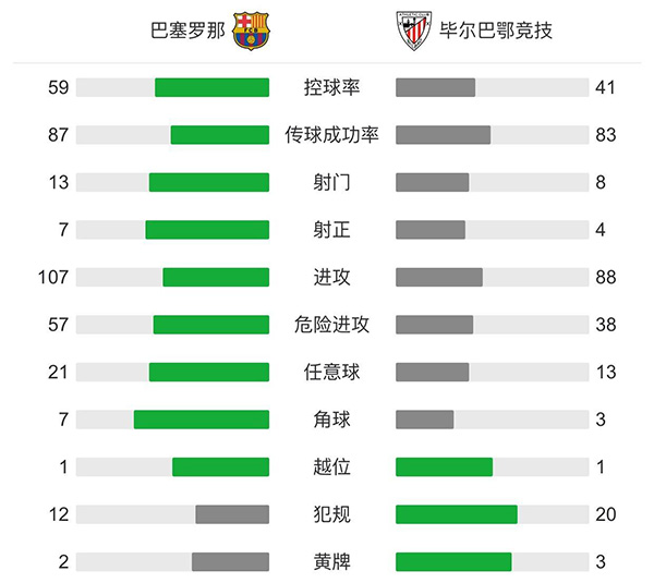查看:巴塞罗那vs毕尔巴鄂 全场录像技术统计: