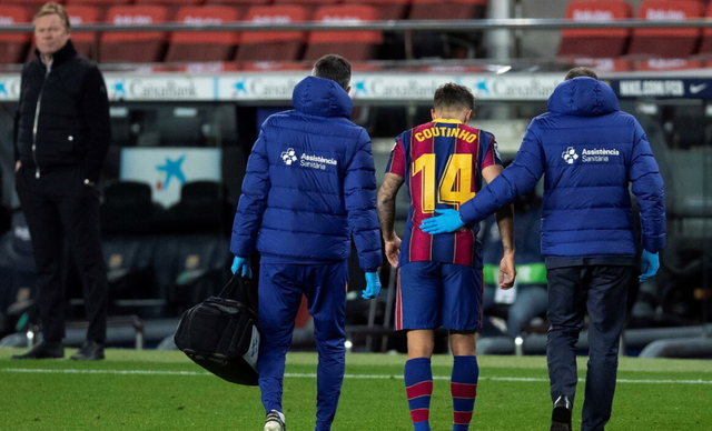 在昨天,巴萨官宣库蒂尼奥左膝半月板受伤,《阿斯报》称接受手术的话要养伤4个月。此前,主力前锋法蒂已经遭遇了重伤,现在又一位攻击手倒下,更加没有人为梅西分担进攻重任了。