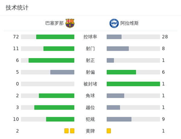 最终,巴萨2-1阿拉维斯。