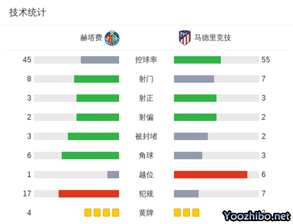 第50分钟,马竞扩大比分!利诺左路弧顶内切后直塞禁区格列兹曼小角度推射破门,赫塔菲0-3马竞。